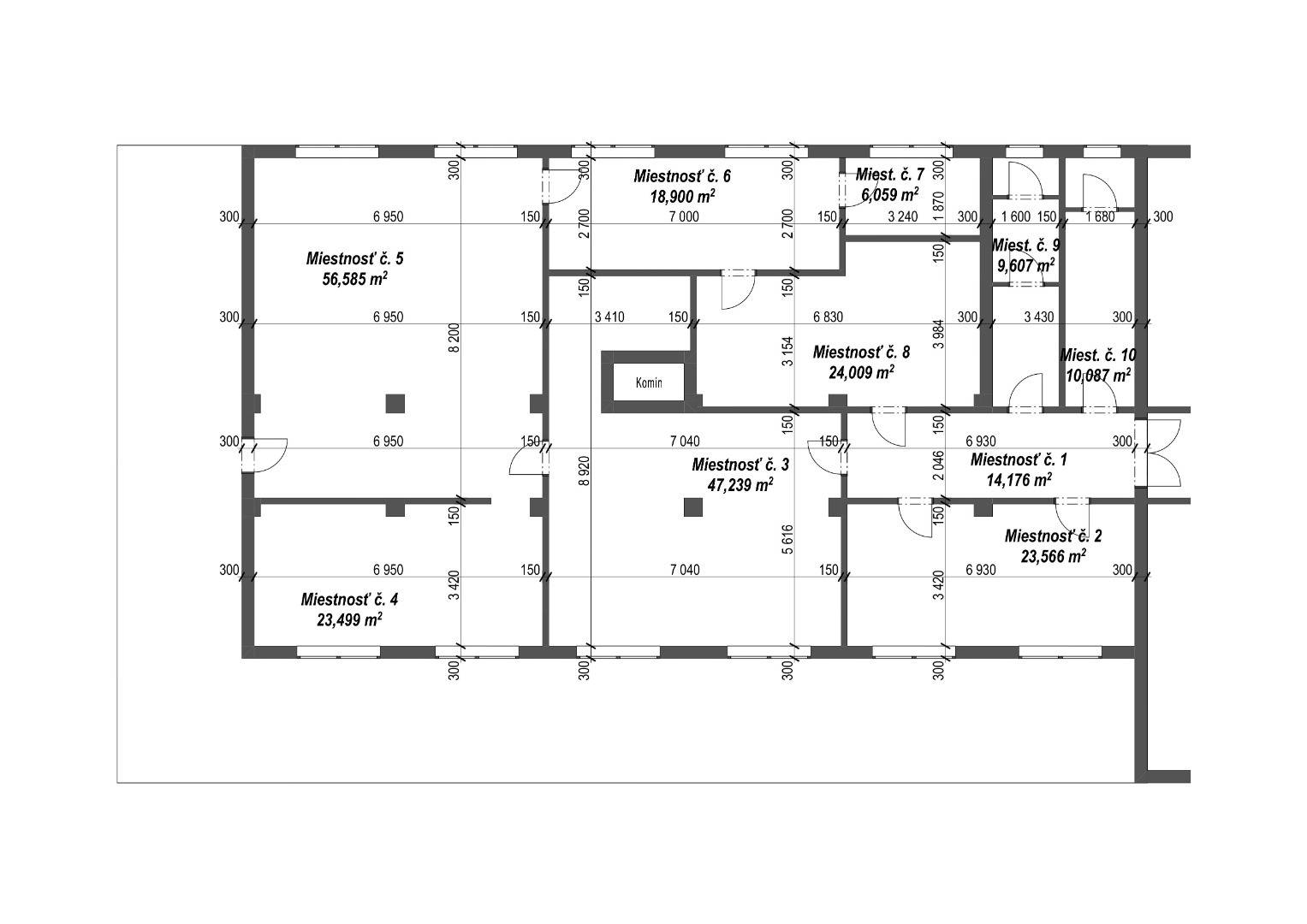 Miestnosť č. 8 je spoločná kuchynka. Miestnosť č. 9 a 10 - spoločné sociálne zariadenia.