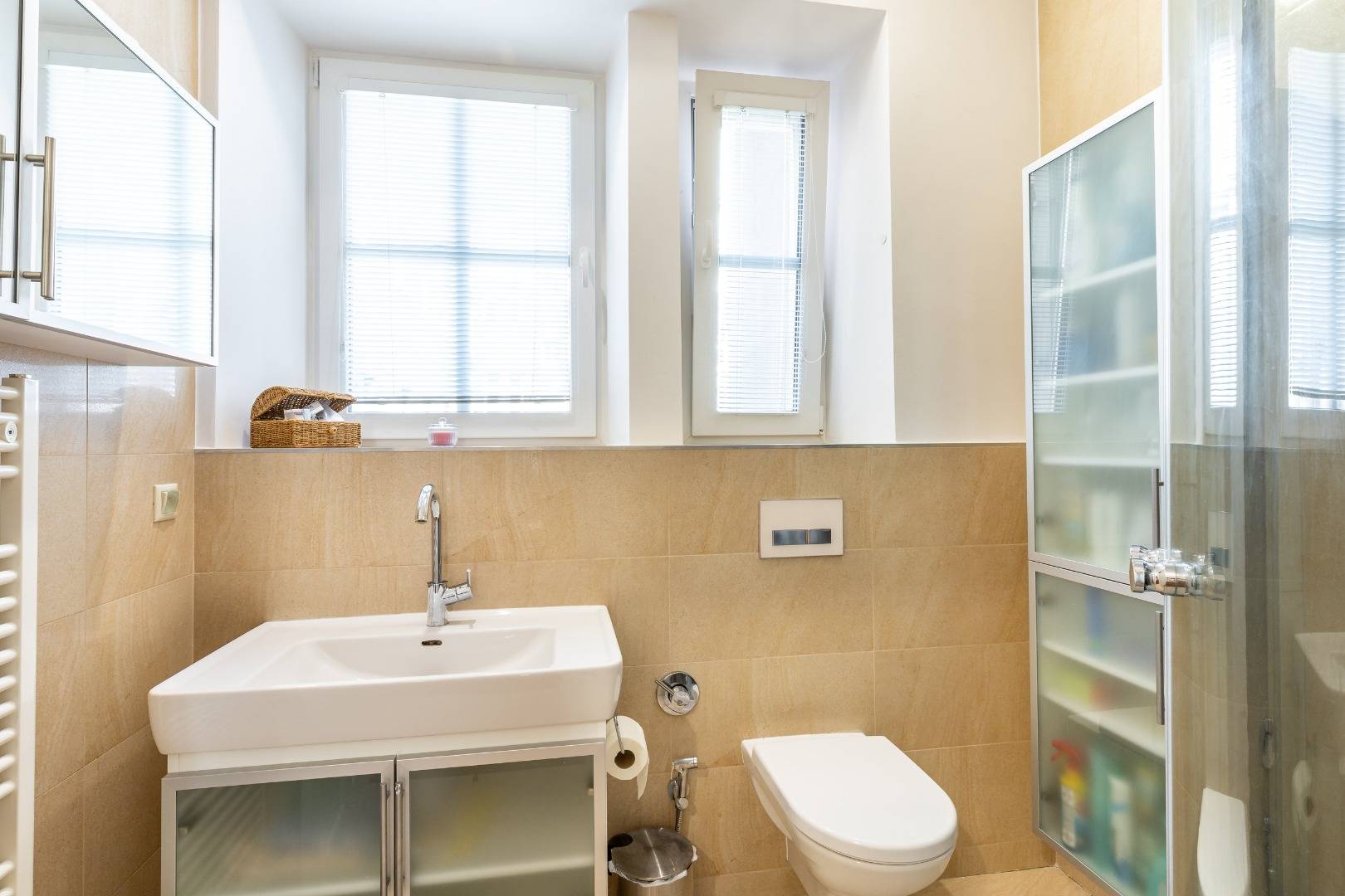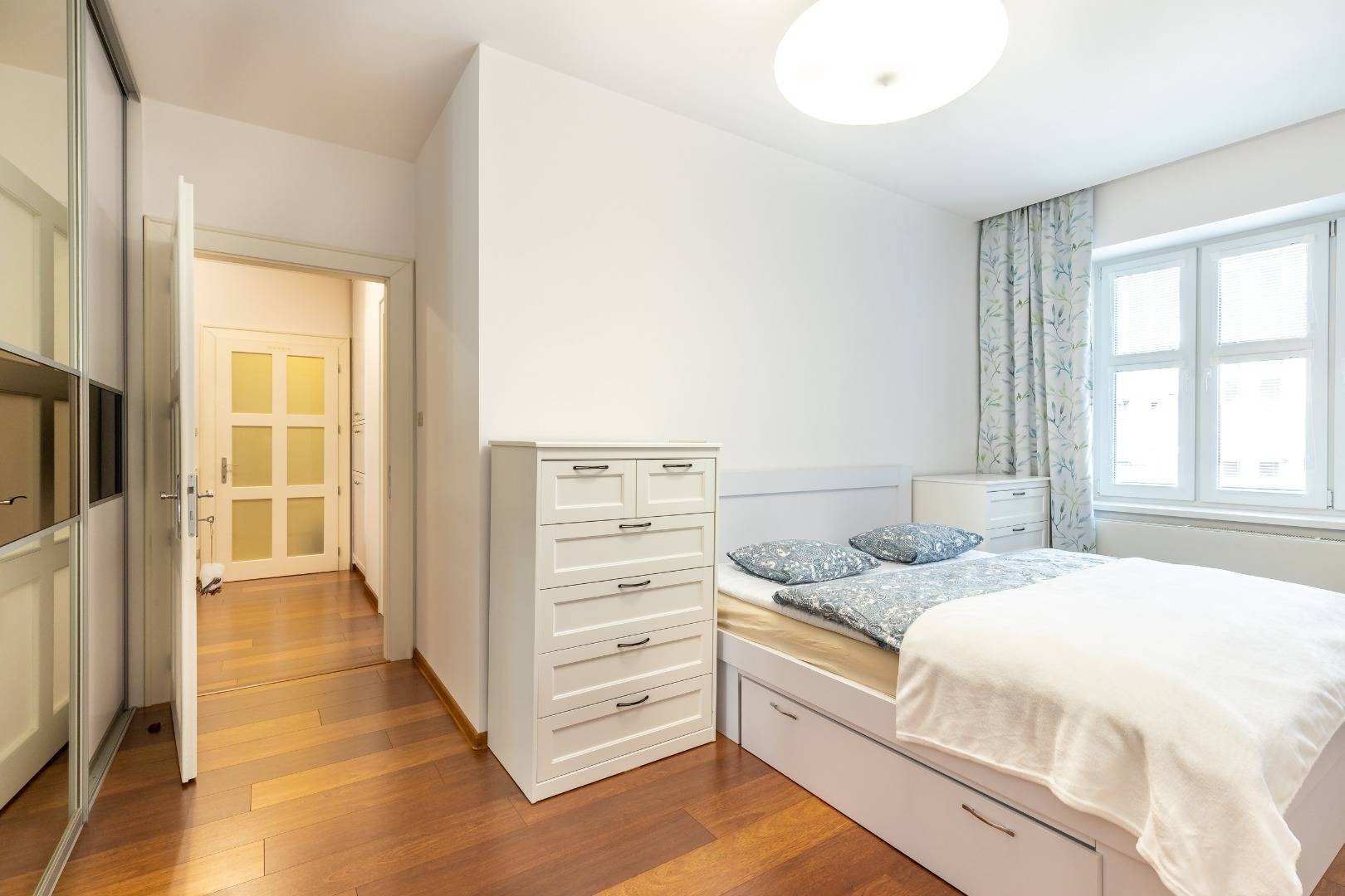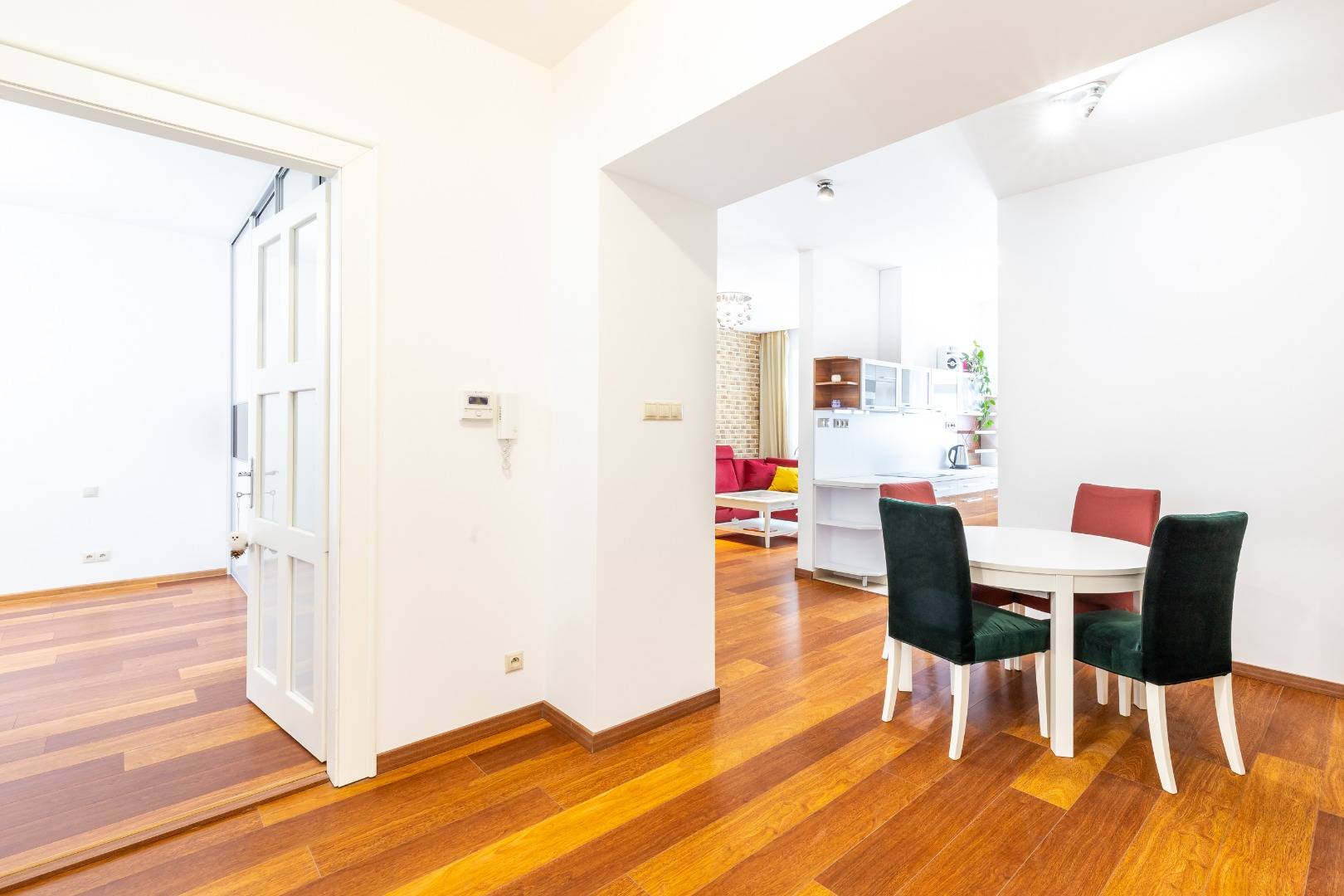 Byt má veľkorysú výmeru 74 m2 s množstvom úložného priestoru. Pozostáva zo vstupnej chodby, kuchyne s jedálenskou časťou a prepojenou s obývačkou, spálne, kúpeľne s toaletou. Je orientovaný to tichého dvora, čo poskytuje pokoj a súkromie.